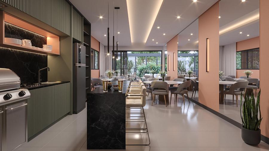 Plantas amplas de 75m3, 95m' e 123m}, em um condomínio completo com academia, pub, espaço gourmet, salão de festas, espaço kids, piscina, mini mercado e muito mais.
